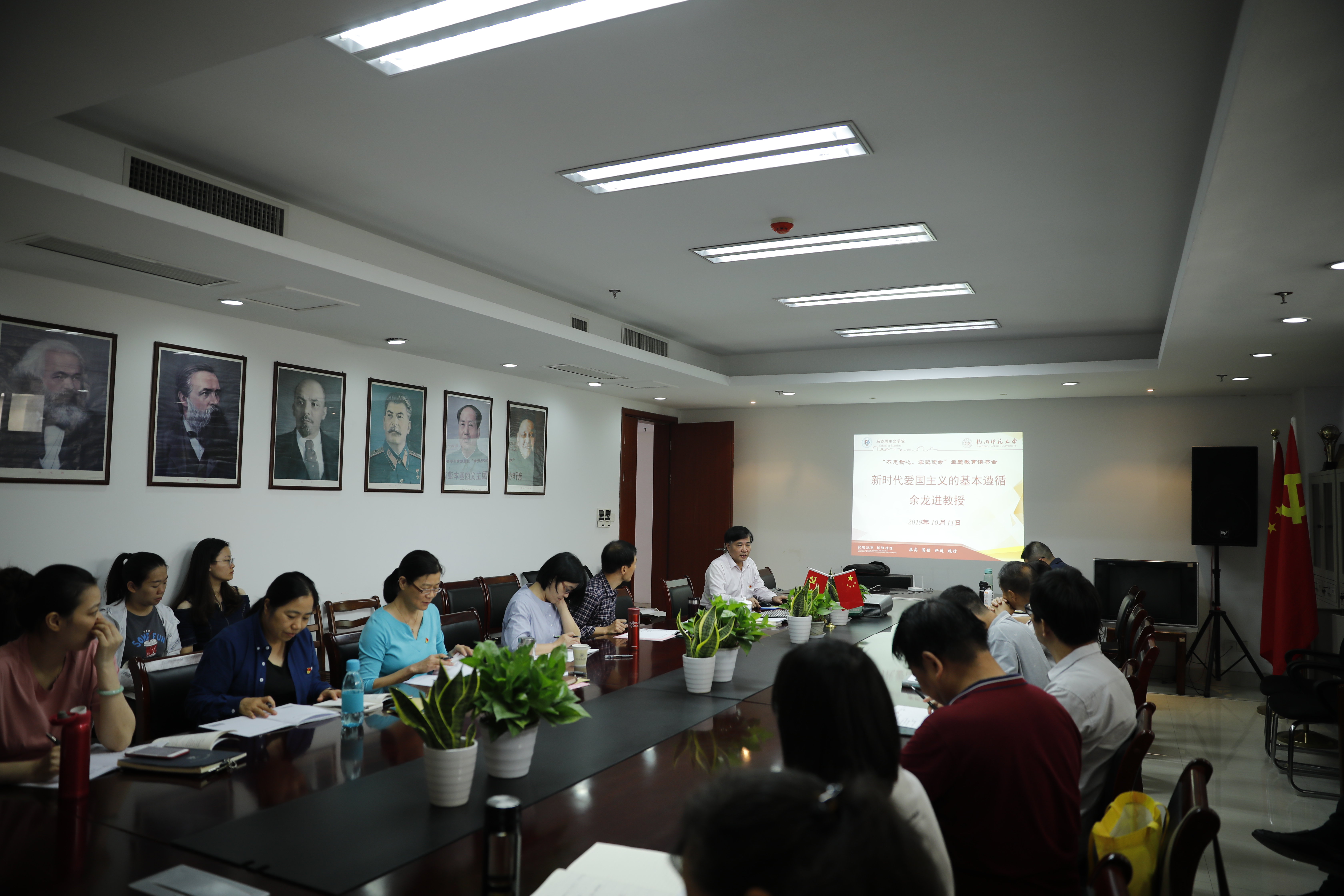 读书会第一个专题交流,由学院党总支委员、教工第一党支部书记应维华老师作“担当作为”主题词发言,带领大家一起学习《关于进一步激励广大干部新时代新担当新作为的意见》。应维华仔细解读和分析了《意见》的主要内容,并结合主题教育学习党史、学习新中国史的内涵,通过列举新中国成立七十年来的伟大成就,用实实在在的成果论证中国共产党人的担当与作为。他还以自身思政课教学的所思、所想、所行,分享作为一名思政课老师的担当与使命,激励大家一起就如何进行有意思、有价值、有创新的思政课教学,提出切实有效的方法和途径。
