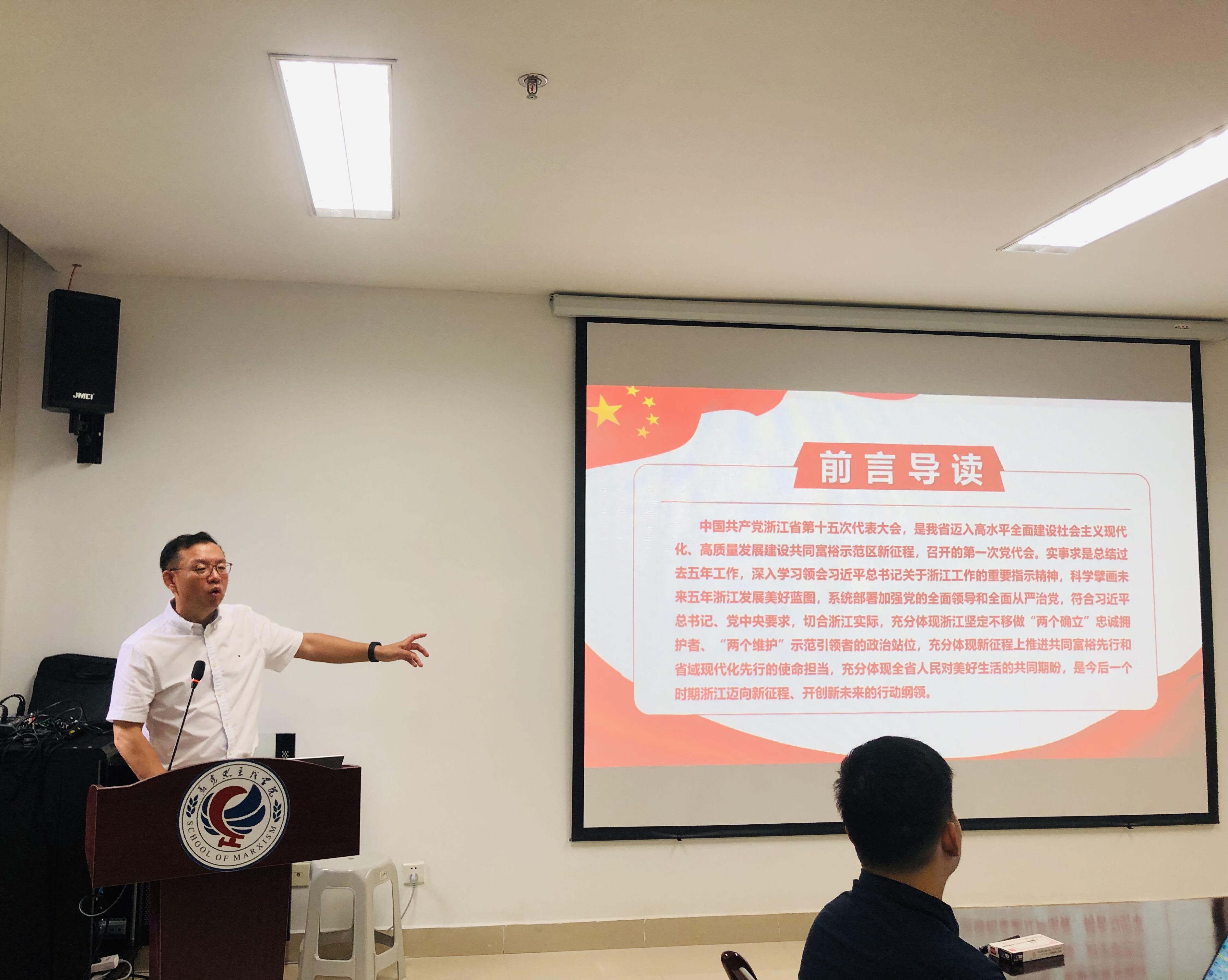 会上,李院长传达学习了省第十五次党代会精神,围绕省第十五次党代会报告“9方面历史性成就”和“8方面规律性认识”“两个先行”奋斗目标和“8个高地”具体目标、“5大战略指引”和“11方面重要遵循”、加强党的全面领导和全面从严治党等内容进行了解读。他指出,深入学习宣传贯彻好省党代会精神是当前和今后一个时期的重大政治任务,作为马克思主义的理论工作者、思政课教师,要努力做省十五次党代会精神学习的先行者、研究和宣传的先行者以及践行党代会精神的先行者。