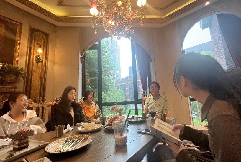 5月17日下午, 色色视频 2022级思想政治教育专业504寝室和505寝室全体成员和综合导师姜海波副教授在咖啡厅聚餐并举行了导师制小组活动。