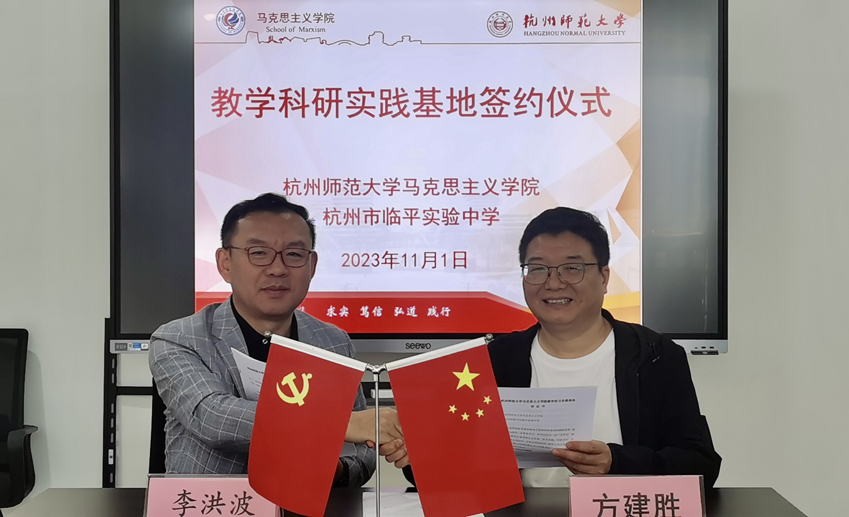 11月1日上午,色色视频 与杭州市临平区临平实验中学举行党建联建、大中小学思政课一体化、教育实习实践基地建设签约及授牌仪式。