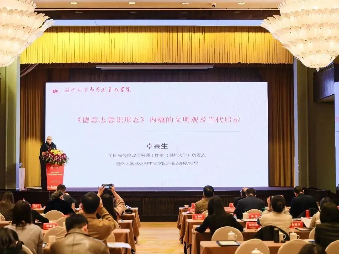 温州大学 色色视频 院长卓高生教授在《<德意志意识形态>内蕴的文明观及当代启示》报告中首先提到当今,以西方为首的国家不断以“文明冲突论”“西方文明优越论”等狭隘言论冲击世界文明,人类文明的内在冲突日渐增长的现象。其次从如何正确看待社会主义文明形态和资本主义文明形态的关系?人类文明进步的方向是什么?这些问题去寻找解决的方法。认为可以从《德意志意识形态》等马克思主义经典著作中汲取正确的世界观与方法论,用科学的文明观来回答好这些重大问题,进而为构建人类文明新形态的实践提供理论支持。最后从历史唯物主义的科学理论奠定文明进步之基;从资本主义文明的理性批判走向社会主义文明;从社会主义文明的时代发展勾勒文明形态之新;从《形态》展望人类文明新形态的时代价值四个方面告诉大家要纵向横向比较学习世界文明和社会主义发展历程。