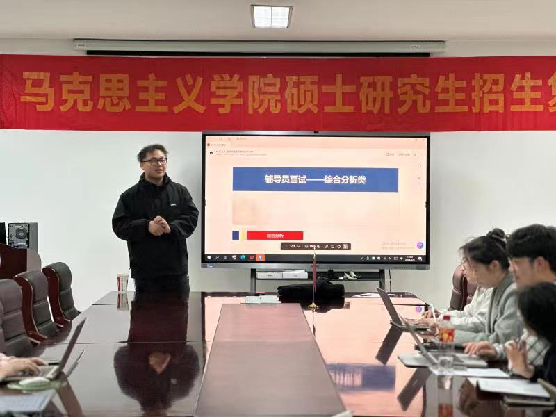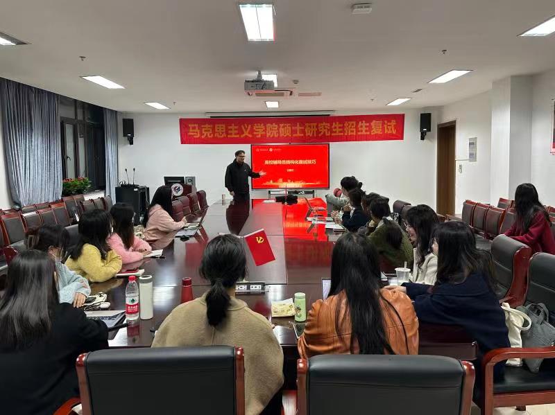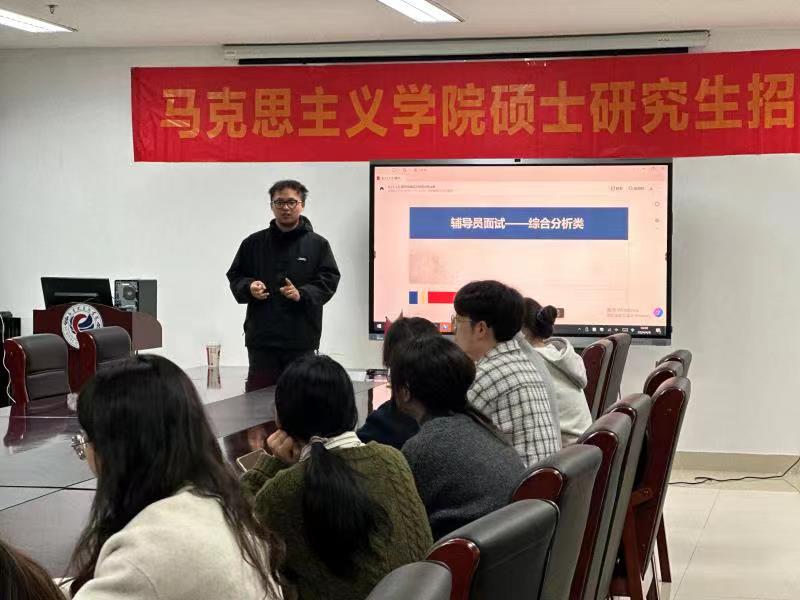 习近平总书记在全国高校思想政治工作会议上指出,要坚持把立德树人作为中心环节,把思想政治工作贯穿教育教学全过程。为了有效提高学生的就业技能,帮助学生更加全面地了解高校辅导员应聘,2024年4月8日晚,色色视频 在恕园26号楼104会议室开展高校辅导员结构化面试技巧指导讲座,由包肇正老师主讲,马院全体研究生参加。