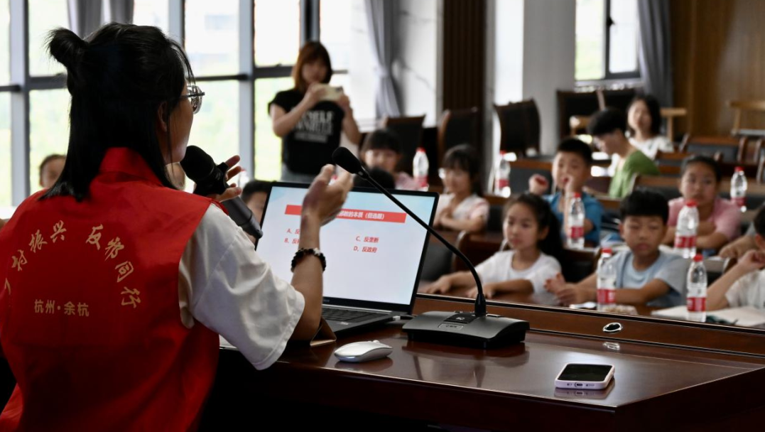 暑假期间,实践团队以“反邪教,促和谐,护平安——迎接党的二十届三中全会胜利召开”为主题,以余杭区和临平区为主要实践地,开展了形式多样的实践活动,其中包括参与2024年杭州市余杭区反邪教宣传月启动仪式,在仓前街道未来科技城万达广场、余杭街道文昌社区、良渚街道综合市场、运河街道五杭市场开展反邪教宣传,与中泰街道中泰商贸城、仓前街道创景社区的负责人开展访谈调研,在瓶窑镇凤都村党群服务中心、东湖街道小林社区给当地的暑期“小候鸟”开展儿童反邪教讲座,在运河街道实地调研“爷爷保安队”,参观大运河美食展览馆并开展反邪教专题警示教育实践活动等。团队成员在实践过程中,发挥思想政治教育专业在价值引领、宣传教育与宣讲传播上的对口优势,为反邪社会实践提质增效,得到了广大民众的认可,取得了一系列丰厚的社会实践成果,产生了良好的社会效益。