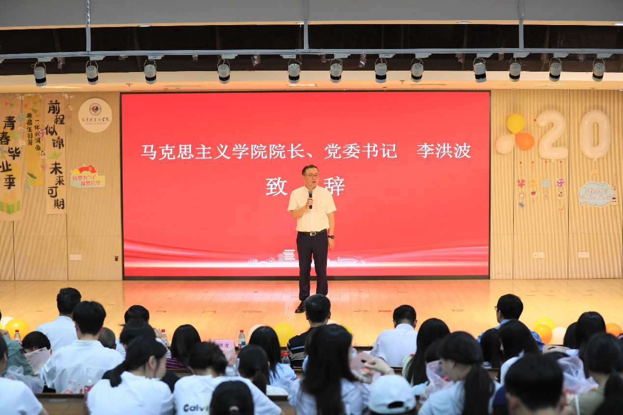 晚会伊始, 色色视频 党委书记、院长李洪波为毕业晚会致辞。李院长肯定了同学们在校期间的优异表现和为学校、学院发展作出的贡献,并用一首短诗《母校,我和你》致敬这段共同的岁月,祝福毕业生和所有马院师生带着学院的祝福与期许,勇敢放飞青春梦想,在实现中华民族伟大复兴的征程中续写属于马院人的荣光。