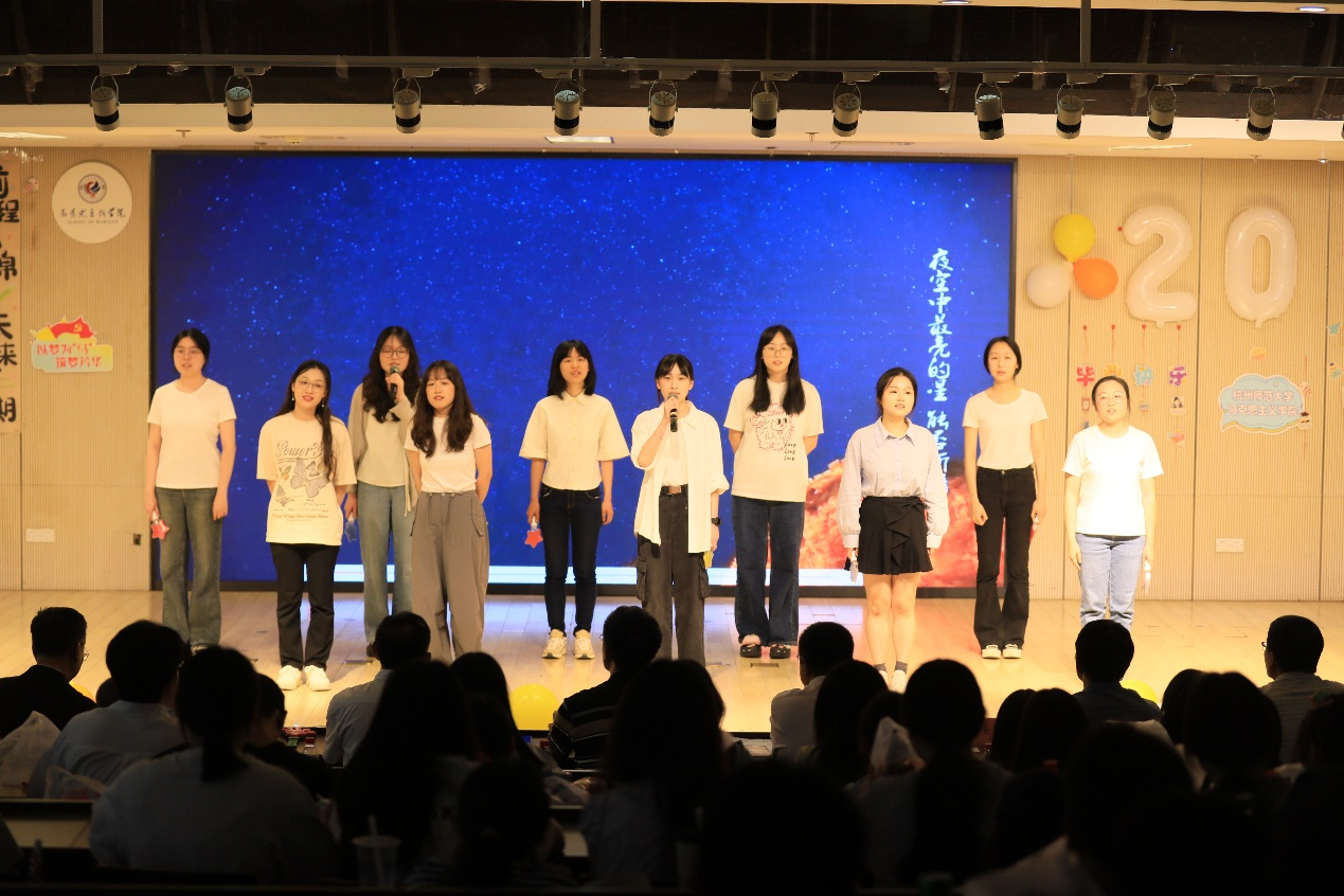 杜文鑫、江沁凝、王子怡、杜艺敏、金慧婷等同学合唱的《夜空中最亮的星》,用歌声照亮逐梦之路,寄托着对毕业生们的美好祝福,愿他们在未来的夜空中始终闪耀光芒。