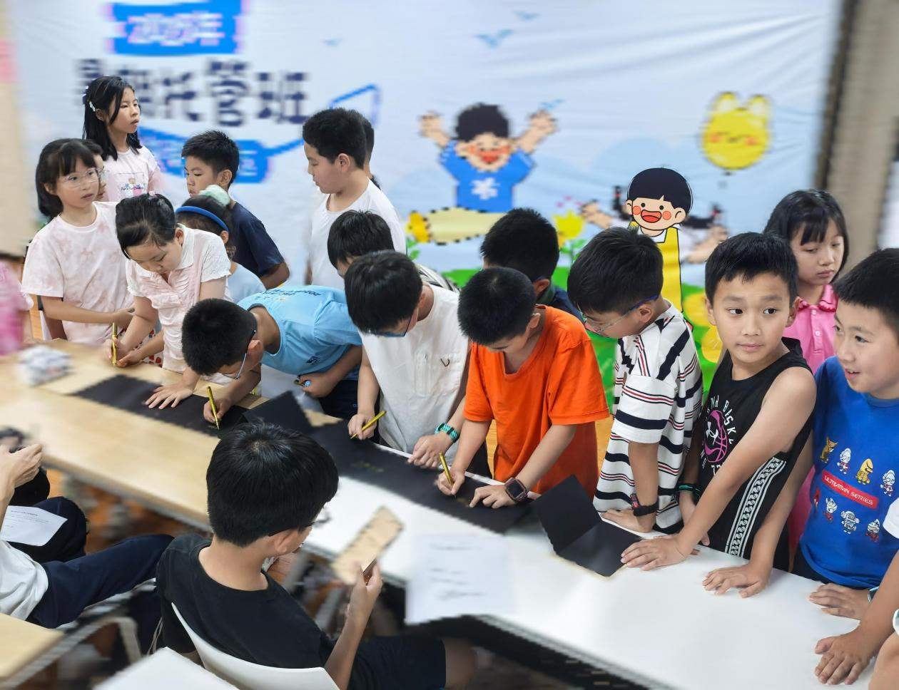跨科实践拓边界,技术开启新体验。在当地工作人员协同下,团队成员采取“暑托班”形式,将素质拓展环节与多学科融合,如引导学生将编程控制与非遗舞龙结合,通过LED光影赋予传统民俗新活力,依托AI搭建的电路拼接方式,完成了“红军号”智能循线车制作,对红军长征的历史有了更深刻的认识。