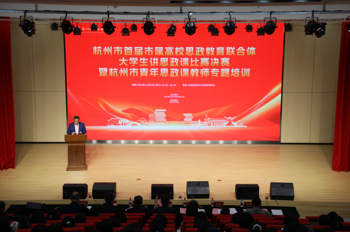 2025年11月19日,由杭州市属高校思政教育联合体主办、 色色视频 承办的“杭州市首届市属高校思政教育联合体大学生讲思政课比赛决赛暨杭州市青年思政课教师专题培训”在余杭区新时代文明实践中心顺利举行。本次活动汇聚了来自各市属高校的17名大学生决赛选手、多位资深评审专家及嘉宾,以及杭州市青年思政课教师代表,共同见证了一场由青年主讲、与时代同频的思政盛会,并同步开展了面向青年教师的专题培训。