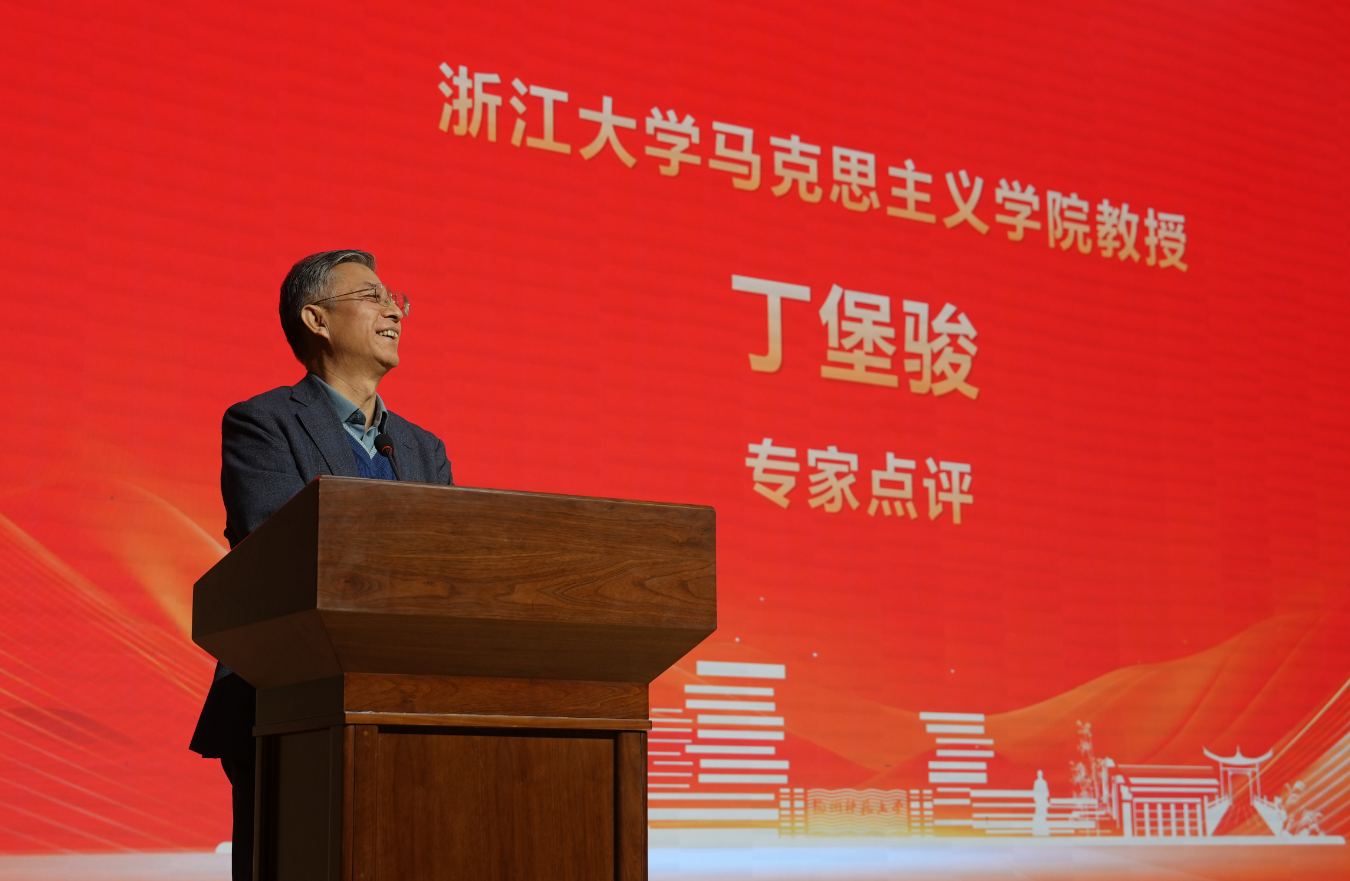 赛事尾声,浙江大学 色色视频 丁堡骏教授与杭州电子科技大学 色色视频 王海稳教授对选手表现作了精准而深入的点评。两位专家一致高度肯定了参赛学子们所展现出的扎实理论功底、开阔时代视野与真挚家国情怀,并从教学实效角度提出建议:优秀的思政课讲授关键在于“讲”而非“背”,鼓励同学们在未来实践中,力求选题“小而精”,做到“以小见大”;在表达上要提升感染力与互动性,让深刻的理论借助生动的形式真正“入耳、入脑、入心”,为同学们未来更好地传播理论指明了提升方向。