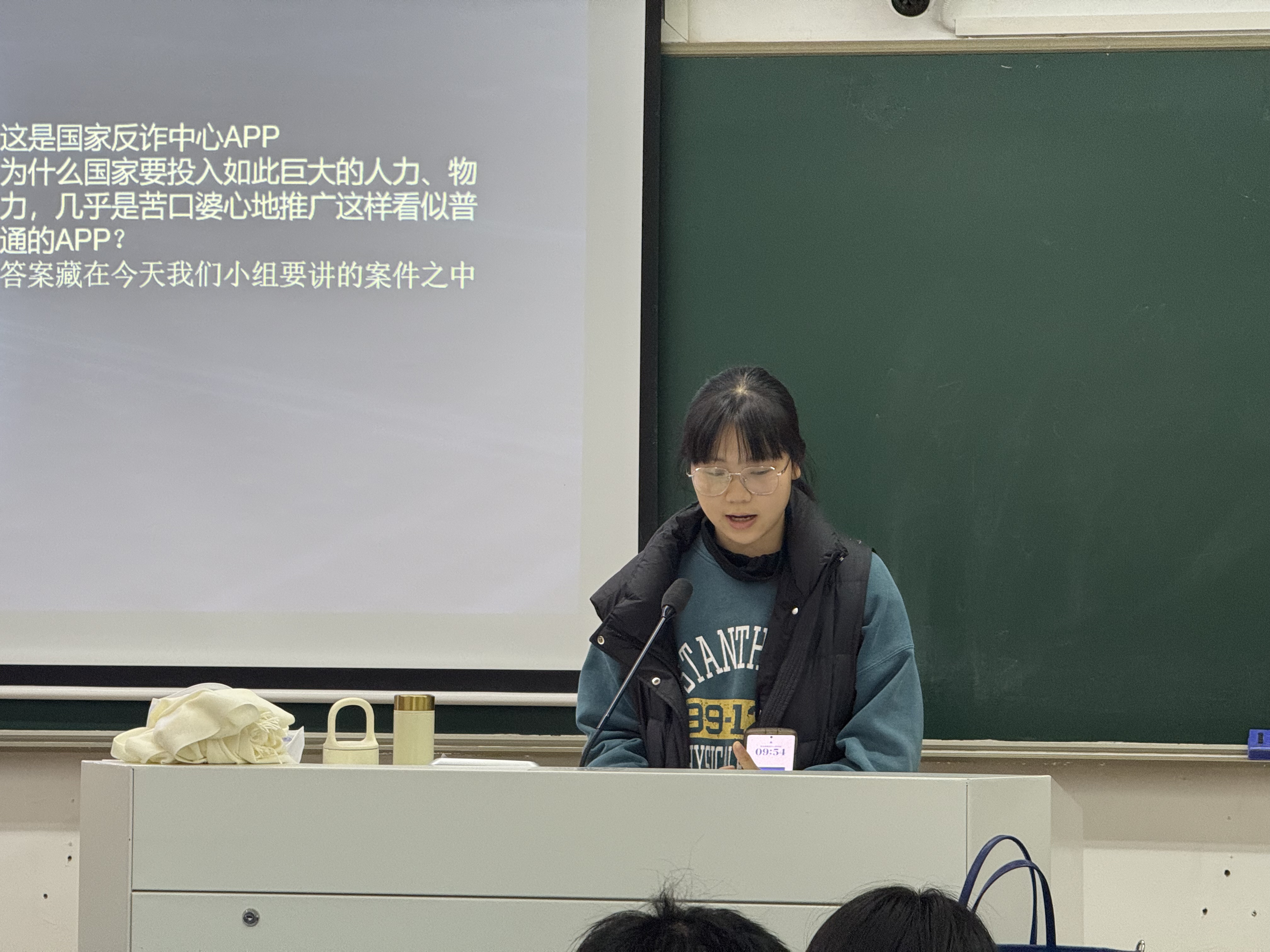 第四组:思政254班的张芳敏、刘肖彤、傅雨艾同学讲述了徐玉玉案。这是一起因个人信息泄露引发的电信诈骗悲剧。案件的迅速侦破与严厉判决,彰显了国家对电信诈骗零容忍的坚决态度。它不仅推动了《网络安全法》等相关法律的完善,促进了反诈宣传在全民范围内的普及,更成为提升社会信息安全意识、构建全社会反诈格局的重要转折点。