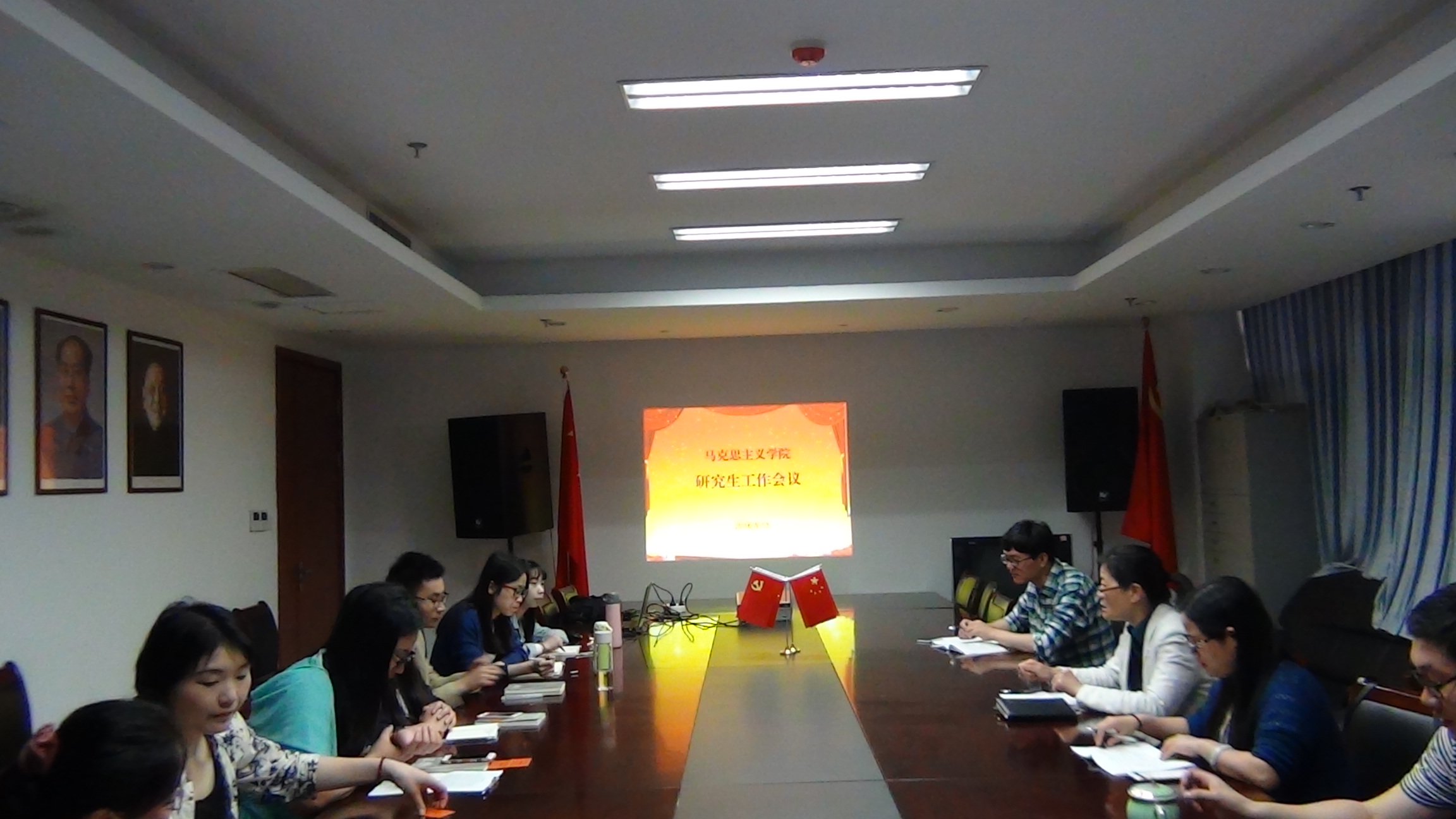 本次会议,在总结马院研究生工作总体情况的基础上,着重研究了马院研究生的就业问题,文明寝室建设和学风建设等问题。何丽君强调:马院要努力提升毕业生的就业质量,马院的研究生要明确自己的就业目标和方向,早打算早规划早准备,马院积极鼓励研究生考博。马院研究生要严格按照学校文明寝室建设的要求,牢记和贯彻学院文明寝室建设“20字口诀”(三子归位,两面干净,不占公共空间,卫生间无异味),切实做好文明寝室建设。马院要继续做好“无手机课堂”建设,把“无手机课堂”建设成为马院研究生学风建设的一大亮点,进一步提高研究生课堂教学的效果和质量。