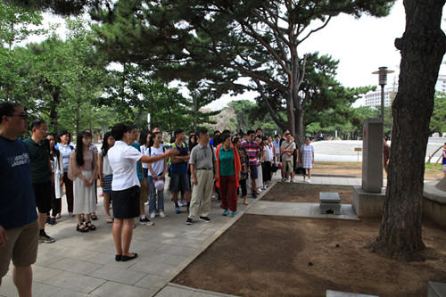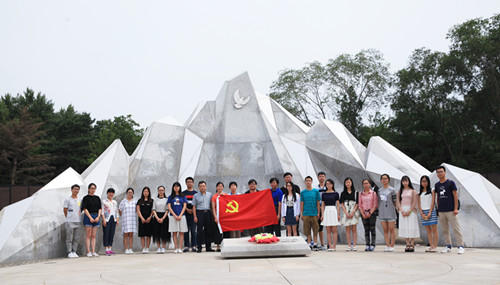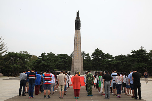 2016年7月15日, 色色视频 思想政治理论课论文竞赛获奖学生“红色之旅”暑期社会实践团一行70余人来到沈阳抗美援朝烈士陵园,凭吊先烈,寄托哀思。