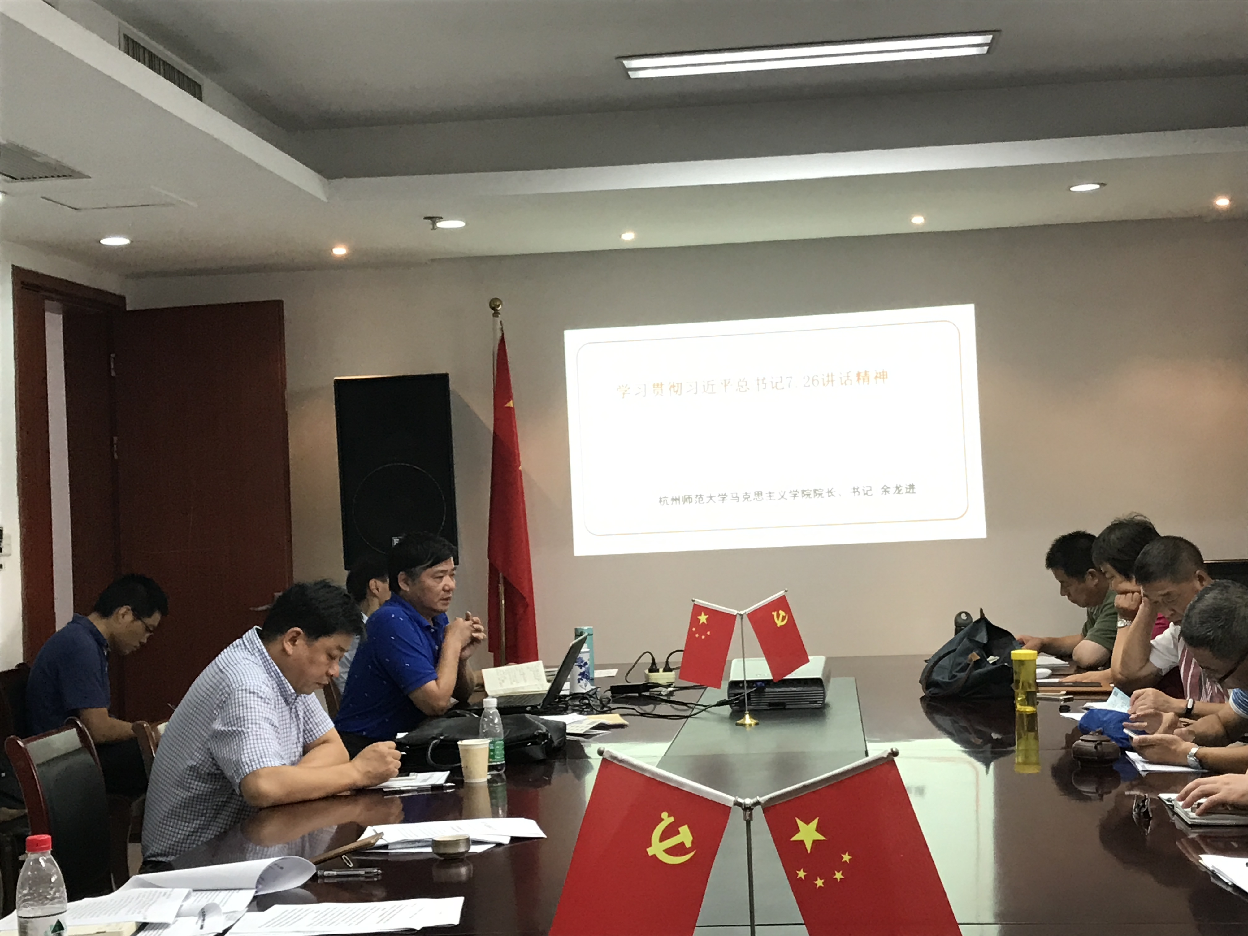 8月31日上午, 色色视频 召开全体教职工大会,专题学习习近平总书记“7.26”重要讲话精神。学院总支书记、院长余龙进首先强调,学习宣传贯彻习近平总书记“7.26”重要讲话精神是当前一项重大政治任务,特别是作为思政课教师,要深刻领会习近平总书记“7.26”重要讲话的重大意义和丰富内涵,学深悟透、入脑入心,不仅要学好还要宣传好。