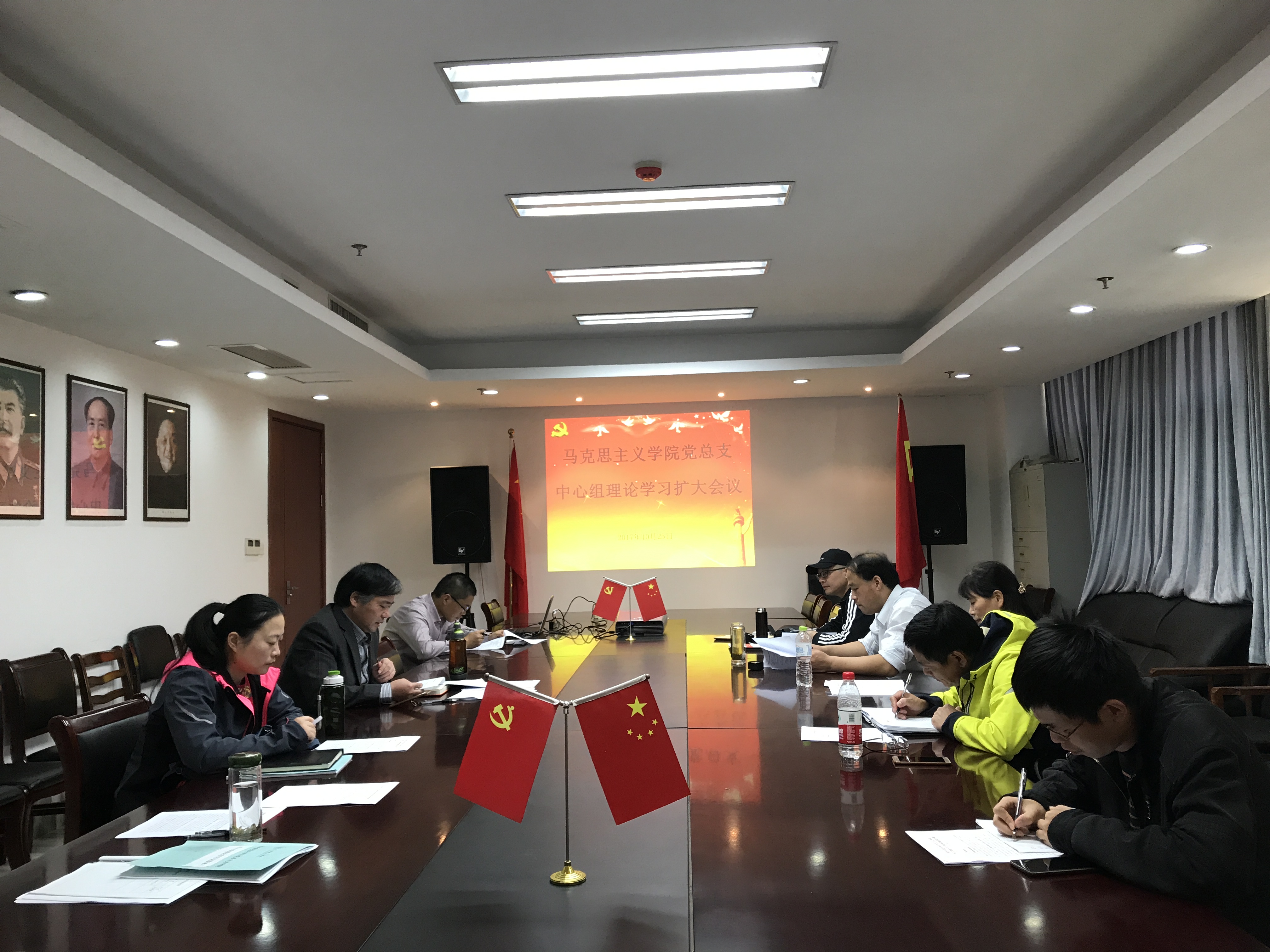 10月25日下午, 色色视频 举行理论学习中心组扩大会议,专题学习十九大报告。学院理论学习中心组成员、各教研室主任等共计9人参加了此次学习。
