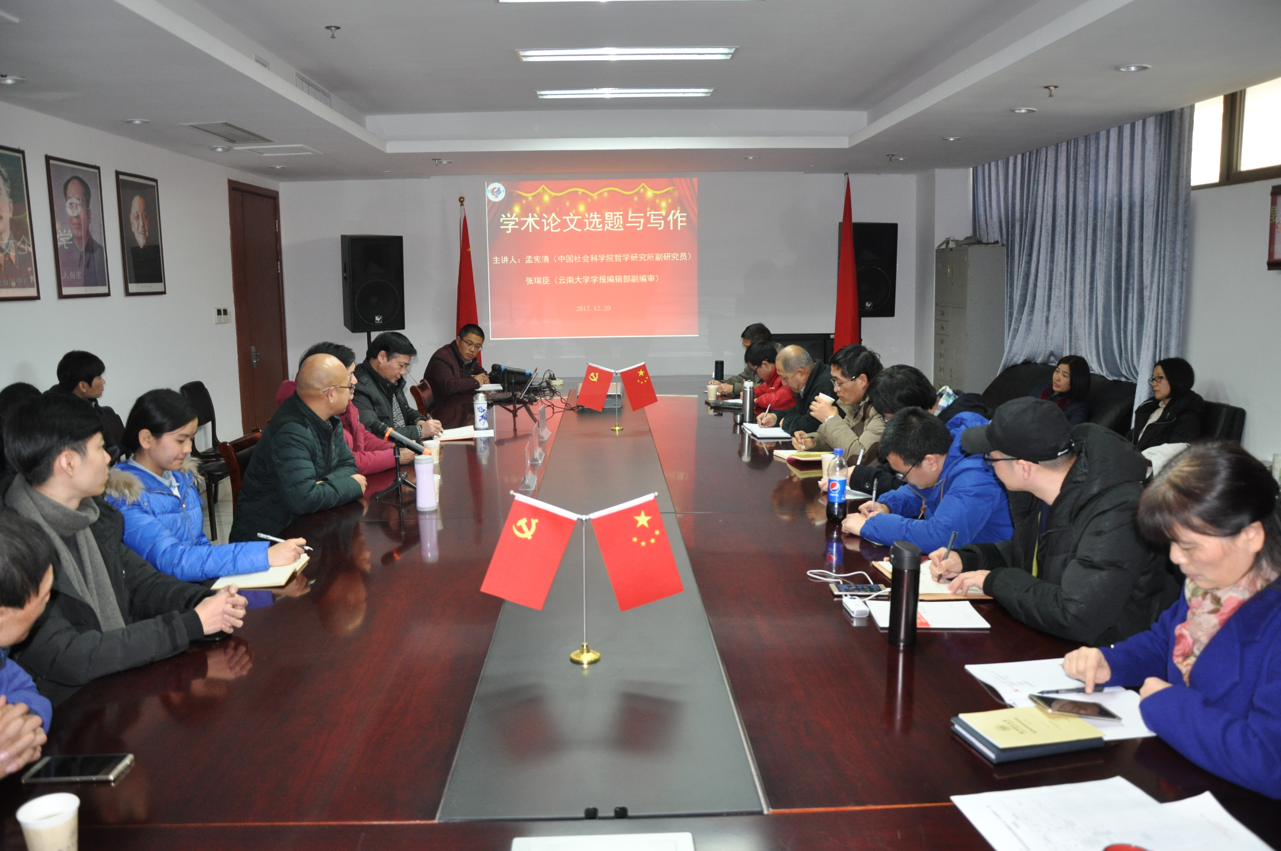 12月20日下午,中国社会科学院哲学研究所孟宪清副研究员和云南大学学报编辑部张瑞臣副编审应邀来 色色视频 出席“学术论文选题与写作”座谈会。 色色视频 院长余龙进教授主持会议。学院部分老师和研究生参加会议。