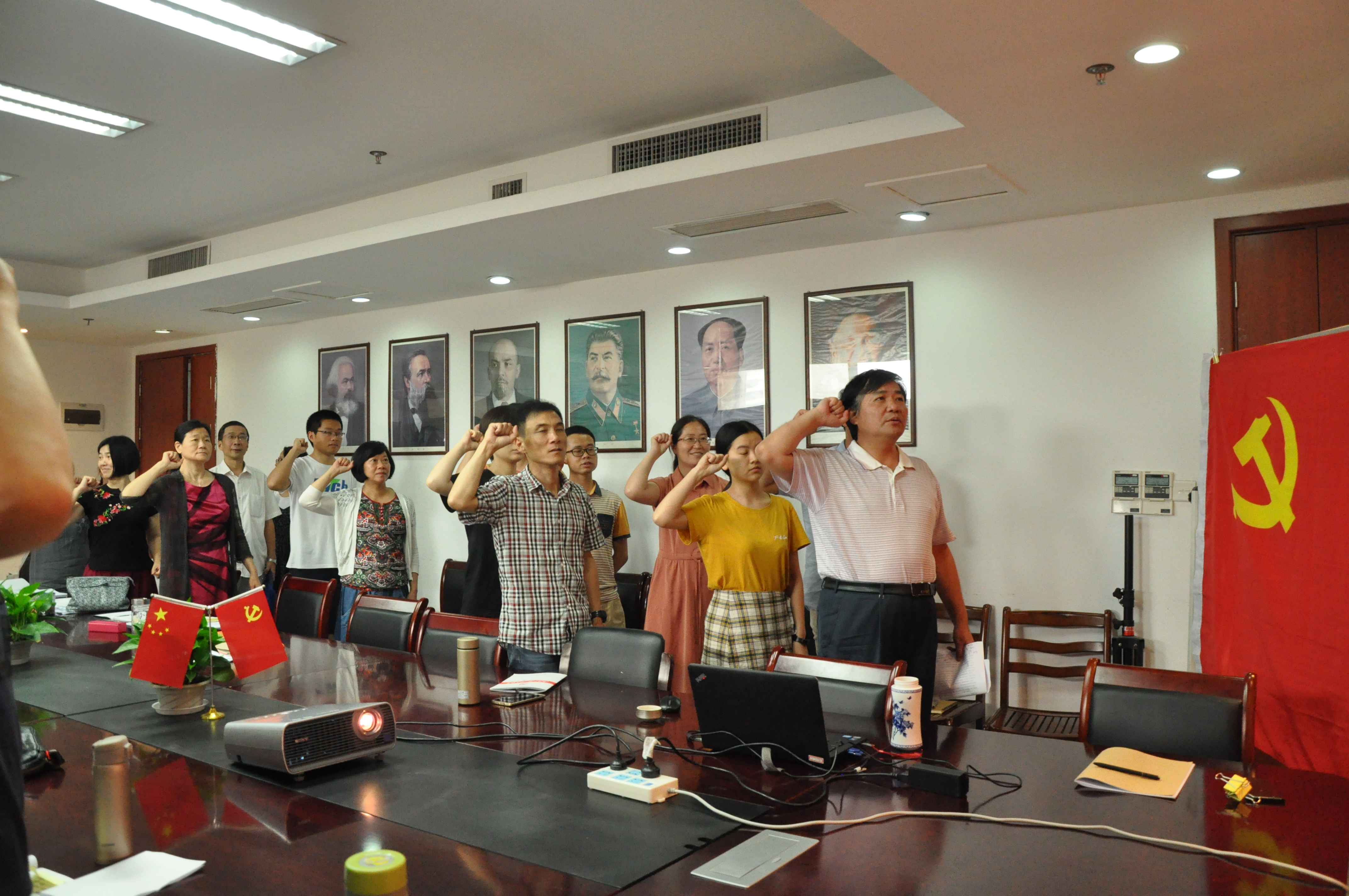 会议最后,还举行了“新党员宣誓,老党员重温入党誓词”集体宣誓活动。全体教工党员与新发展学生党员在院总支书记余龙进的带领下向党旗庄严宣誓,表达了对党的无限忠诚和热爱。