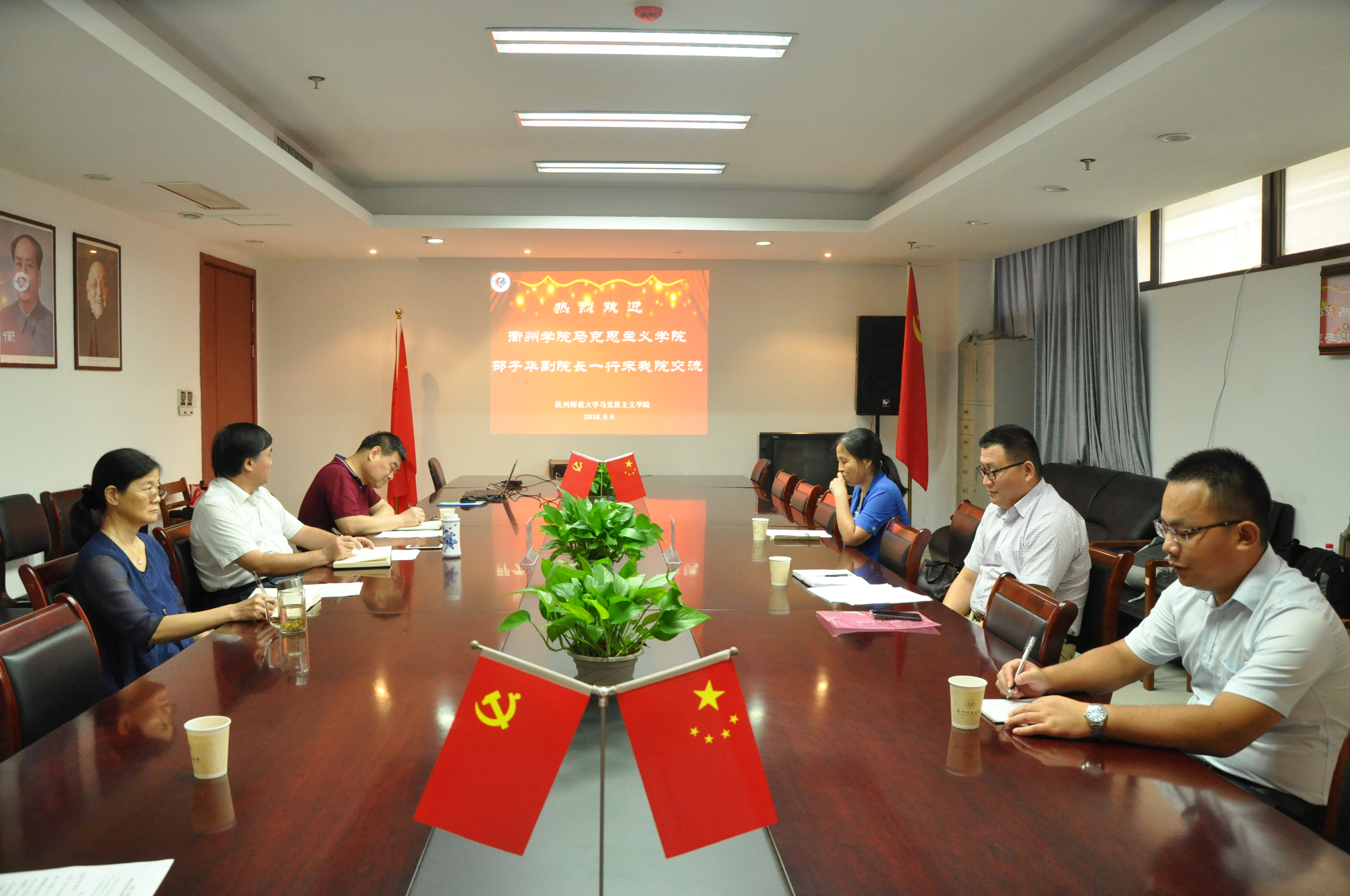 2018年9月6日下午,衢州学院 色色视频 副院长邵子华一行3人来 色色视频 交流考察。学院党总支书记、院长余龙进,副院长何丽君以及思想道德修养与法律基础教研室教师李瑞平等参加了交流会。