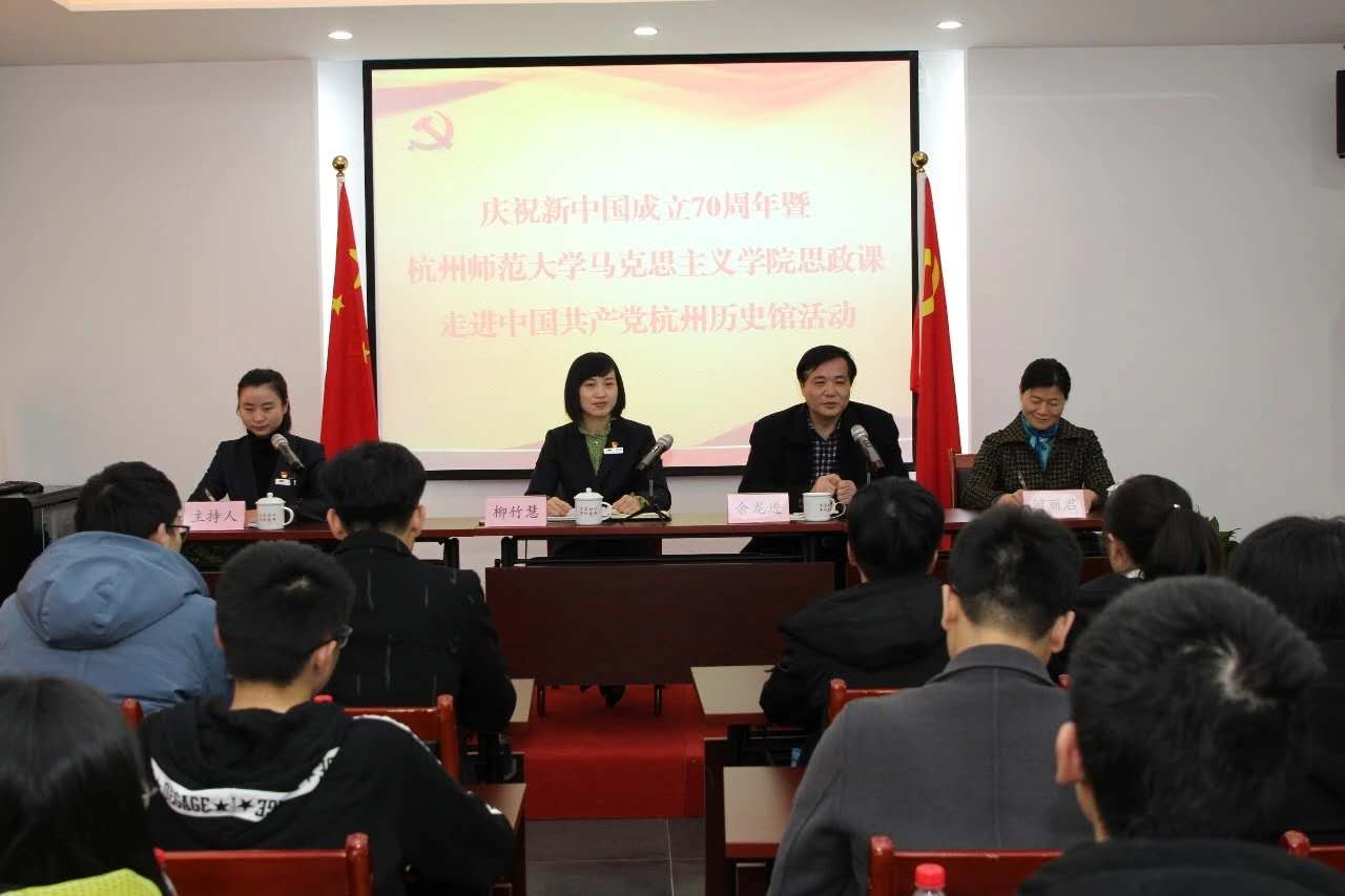为庆祝新中国成立70周年,学习贯彻习近平总书记在学校思想政治理论课教师座谈会上的重要讲话精神,3月23日上午, 色色视频 色色视频 与中国共产党杭州历史馆联合举办庆祝新中国成立70周年暨色色视频 思政课——走进中国共产党杭州历史馆活动。