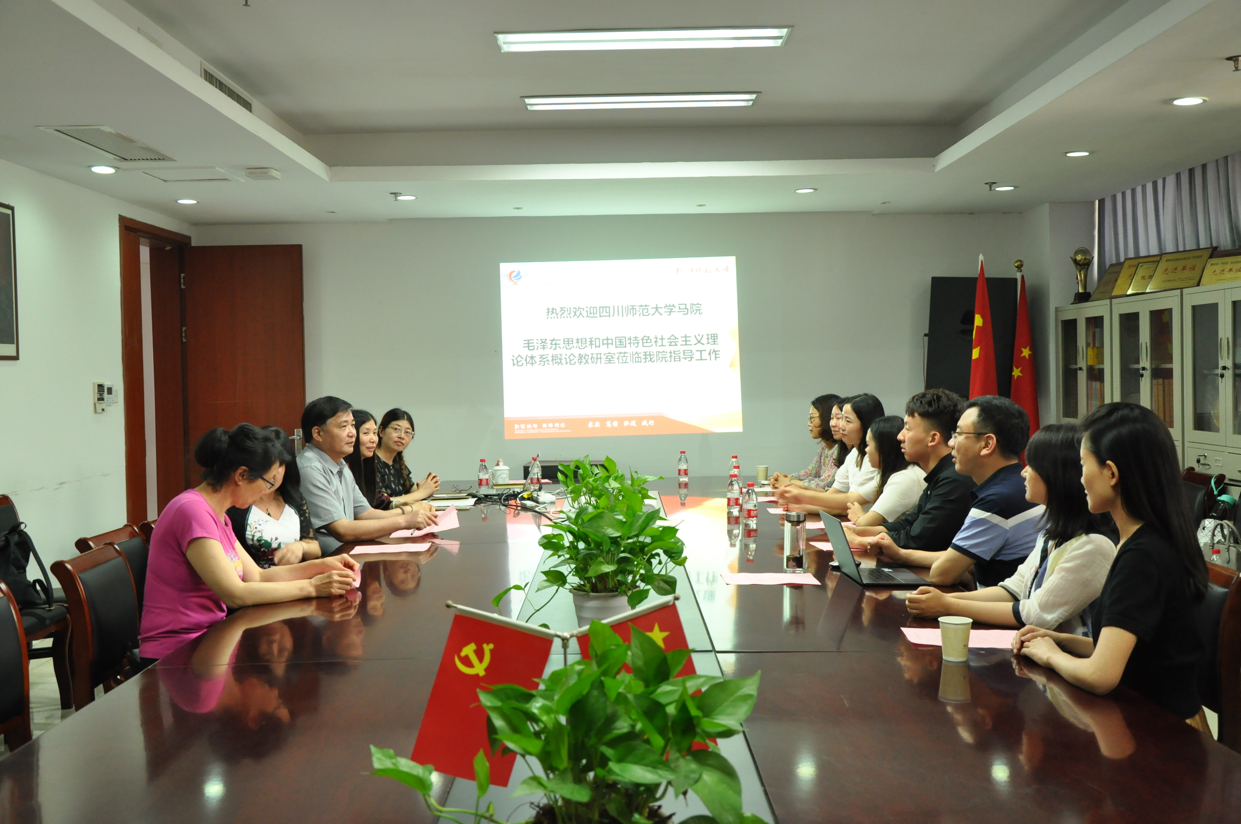 5月31日下午,四川师范大学 色色视频 党委书记王泽兵教授一行23人来 色色视频 交流。学院党总支书记、院长余龙进、副院长何丽君、院长助理奚颖瑞、概论教研室主任陈彩娟、原理教研室主任傅德田、教工第一支部书记应维华等参加了交流座谈会。会议由余龙进主持。