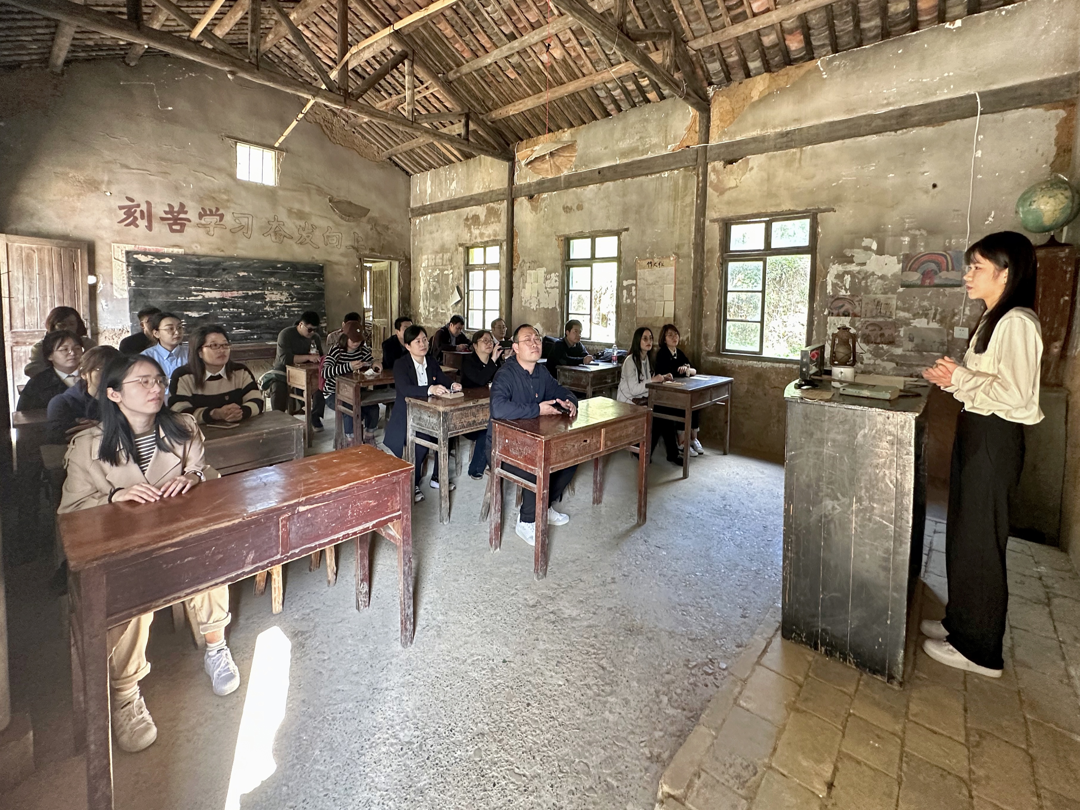 在电影《我和我的家乡》中“最后一课”的取景地, 色色视频 青马宣讲团的宣讲员汤晴为大家带来了一场生动的微党课。汤晴同学以下姜村的脱贫路为切入点,从下姜村看到共富浙江,以浙江之窗展示中国之治,就“什么是共同富裕”“为什么要实现共同富裕”“怎样实现共同富裕”,深入宣讲习近平总书记在党的二十大报告中有关共同富裕的重要论述,并结合自身所学,阐述了“共同富裕”这一话题背后严密的马克思主义历史逻辑和丰富的新时代中国特色社会主义现实内涵。