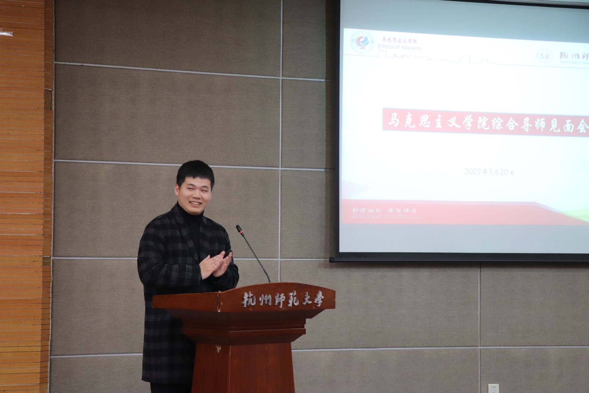 龚院长表示综合导师制是杭师大的优秀传统,马院第一届本科生要开创新局,形成马院的开山之作。鼓励同学们要不断汲取导师的经验来充实自己。不仅仅是当下的导师,还有漫长人生旅途中的诸多导师。并且引用了李强总理的一段话:“坐在办公室碰到的都是问题,深入基层看到的全是办法。”同理,老师要多多深入学生群体,听取学生的意见。