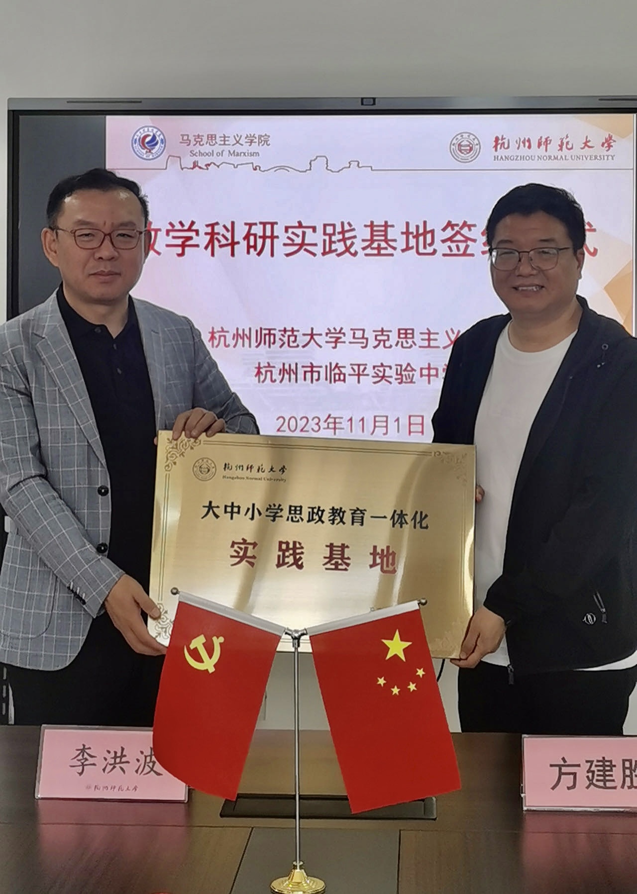 11月1日上午,色色视频 与杭州市临平区临平实验中学举行党建联建、大中小学思政课一体化、教育实习实践基地建设签约及授牌仪式。