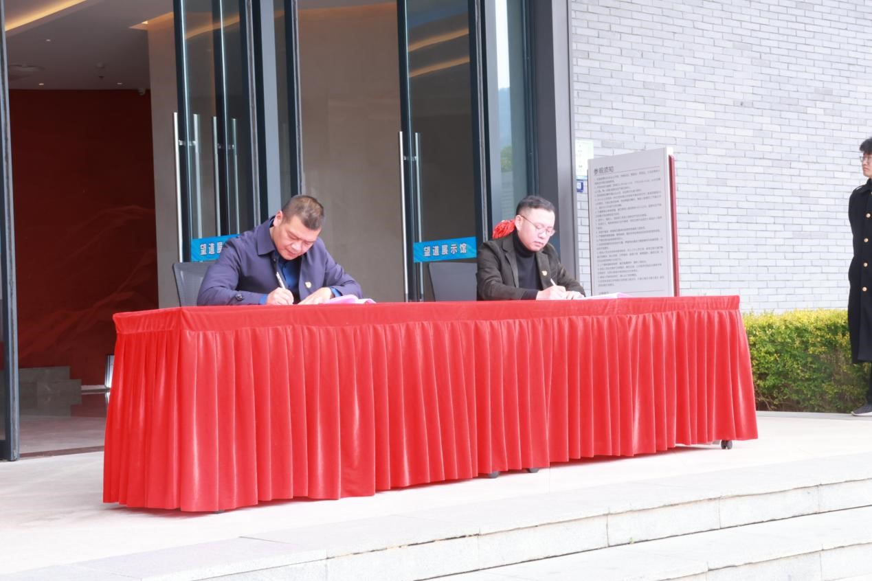 在参观望道展示馆前,马克主义学院与分水塘村举行了隆重的实践基地签约挂牌仪式, 色色视频 党委书记、院长李洪波,党委委员、副院长龚上华,与义乌市分水塘村党支部书记张跃林、义乌市分水塘村青年委员陈卫强进行现场签约和双基地(“教育科研实践基地”、“大中小思政教育一体化基地”)揭牌仪式。
