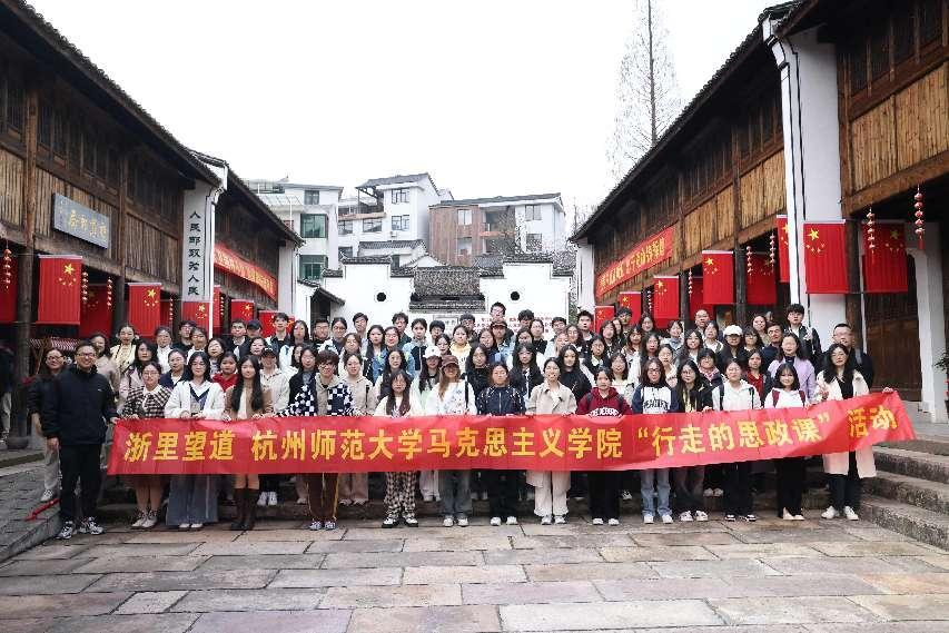 色色视频 院长、党委书记李洪波,副院长龚上华,带领 色色视频 全体思政课教师、思政论文竞赛获奖学生代表、思想政治教育本科(师范)专业的2022级学生共计170余人,齐聚一堂,走访陈望道故居、望道陈列馆、李祖村等地,创新“书记现场党课”“教授思政授课”“重走习近平总书记的足迹”“重温入党誓词”等形式,使思政教育贯通课内与课外、线上与线下、校内与校外,推动思政小课堂与社会大课堂紧密结合,从温故知新、推陈出新,到焕然一新,让思政课“活”起来。
