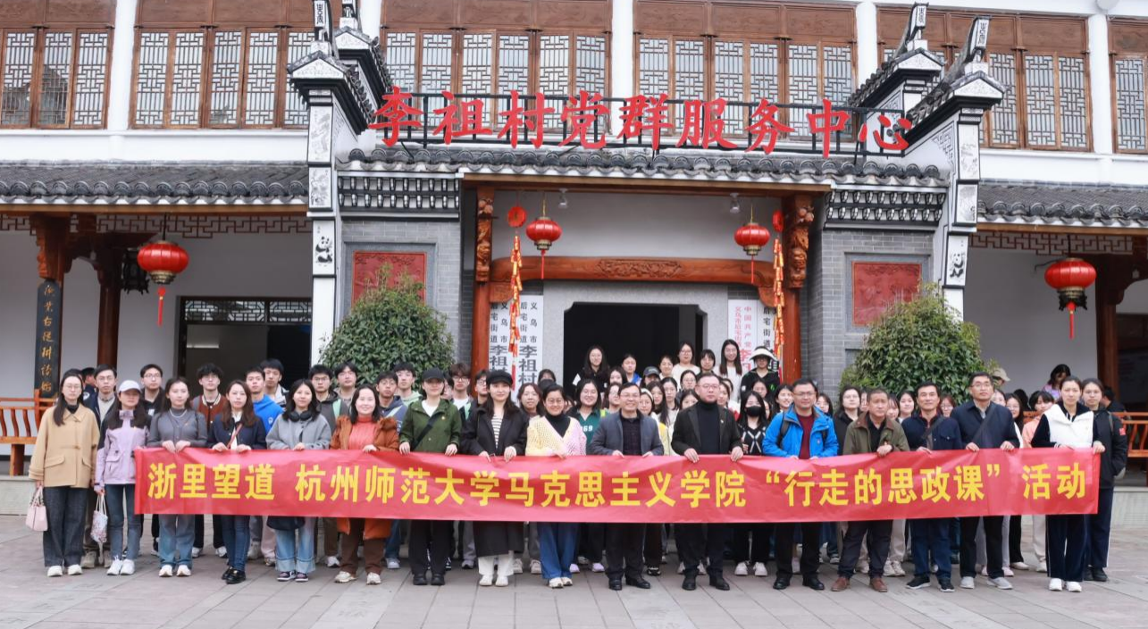 3月16日下午,马院这堂“行走的思政课”追随习近平总书记的脚步,转移到义乌市李祖村。教师代表与同学们感受乡村品牌,品尝乡村特色,融入乡村氛围,在这一幅美丽生态、美丽经济、美好生活有机融合的乡村振兴图景中体会到了党建引领下“两山”理念与“千万工程”的强大魅力,真正体会到“农民变股民、村房变楼房、流量变产量、颜值变产值、资源变财源、山区变景区”的真正魅力。