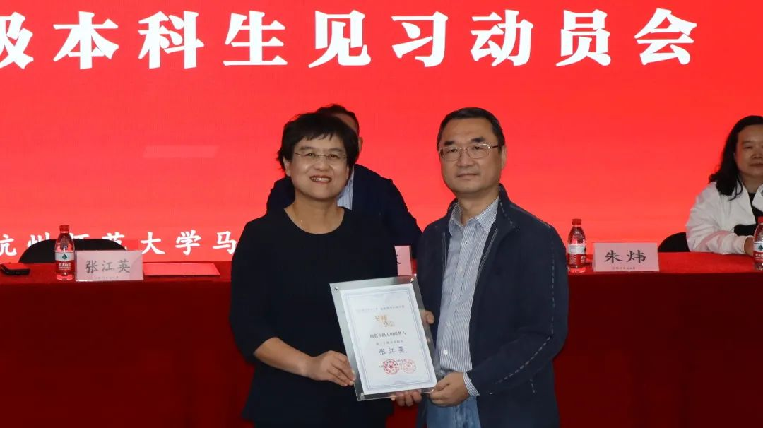 分享会前,李洪波院长为张江英书记颁发“浙里望道”导师证书,校友办主任朱炜为张江英校友颁发“校友导师引领计划”导师证书。