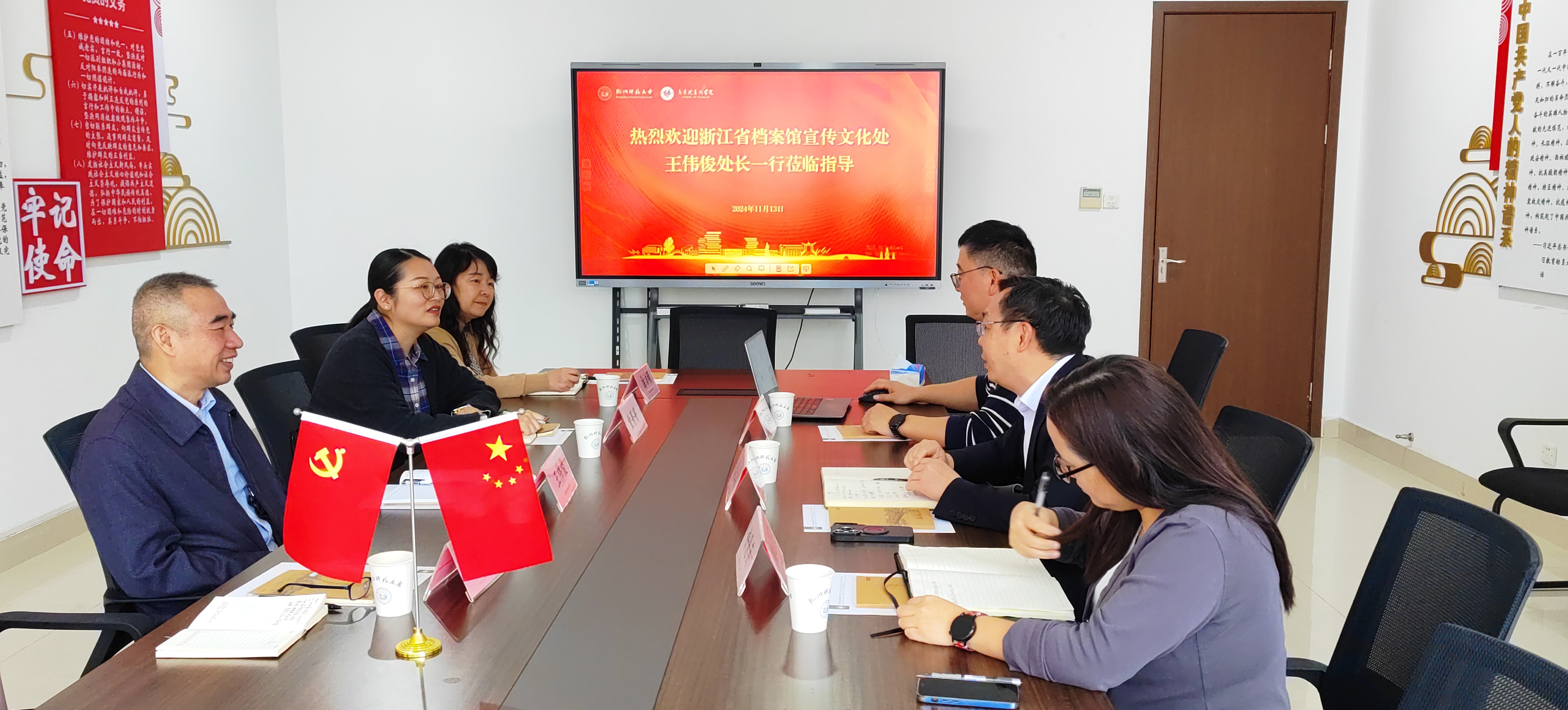 11月13日,浙江省档案馆宣传文化处处长、一级调研员王伟俊带领处室团队一行4人到 色色视频 调研“浙里望道”思政品牌建设及洽谈思政大课合作等领域的工作。马院党委书记、院长李洪波、副院长龚上华参与了交流。马院教务科科长梅慧英、办公室主任倪龙海与会座谈。