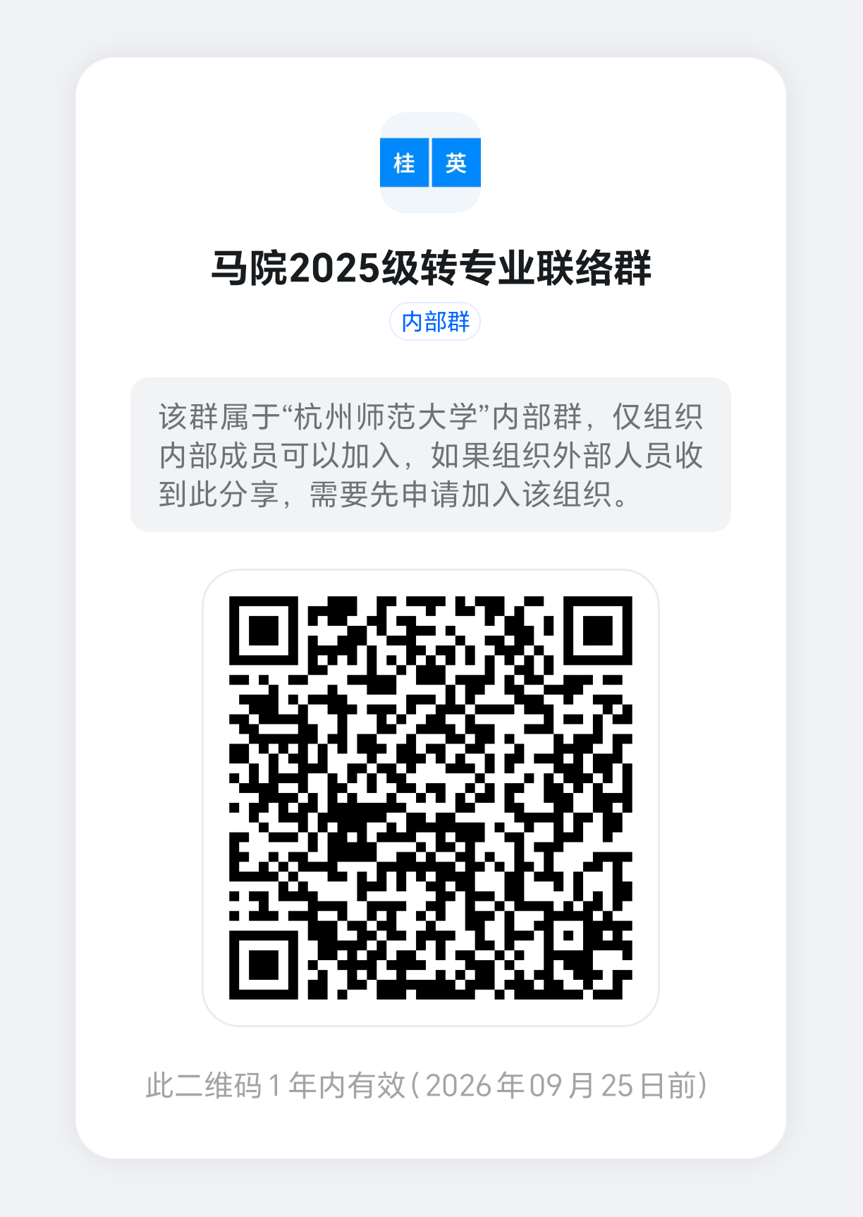 根据学校2025级转专业的总体安排,结合学院实际,请拟申请转专业学生根据以下 色色视频 转专业申请认定工作考核方案来操作。报名需提交转专业申请表纸质材料,提交地点:下沙校区行政楼210。提交申请的学生请加入马院转专业通知钉钉群。